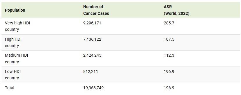 For example, additional research from the WCRF has found a positive relationship between cancer rates and countries that score highly in the Human Development Index (HDI).