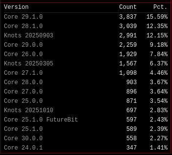 The video below goes through the propaganda and deceitfulness of those trying to attack Bitcoin and harm node runners with Bitcoin Core v30 allowing 100k of non-transaction data to be added to a transaction, opening up the CSAM door. Consequently, Bitcoin Core v30 was up to 560 nodes, but seems to have dropped to 558. While Bitcoin Knots 29.2/20251010 has climbed above it, and with Knots still holding around 22% of market share with all versions. I’d wager that the corrupt corporations looking to profit off of the Bitcoin name for their scammy side projects are responsible for most of those nodes. Since the corrupted Bitcoin Core developers aren’t backing down, the chances are significantly gaining for a soft fork to deal with SPAM transactions once and for all, and to also fix the taproot hack they’ve been exploiting for inscriptions damaging the UTXO set, which they’ve left unfixed for a couple years (purposeful). Just in case someone puts some bad data in the OP_RETURN 100k block of a transaction, I’ve converted my primary node to Tor only like my backup node, as you might not want to be advertising to the world that you’re running a Bitcoin node until these issues get corrected.