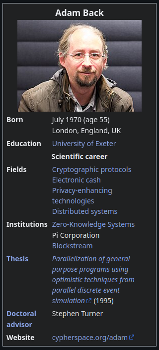 And Adam Back’s Wiki page is at the bottom below the news article.