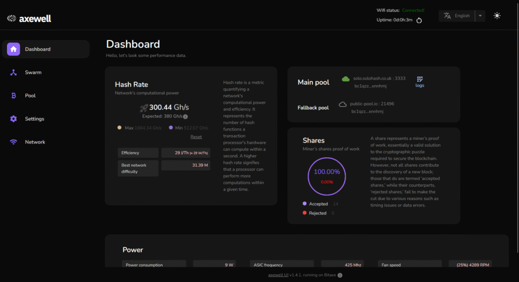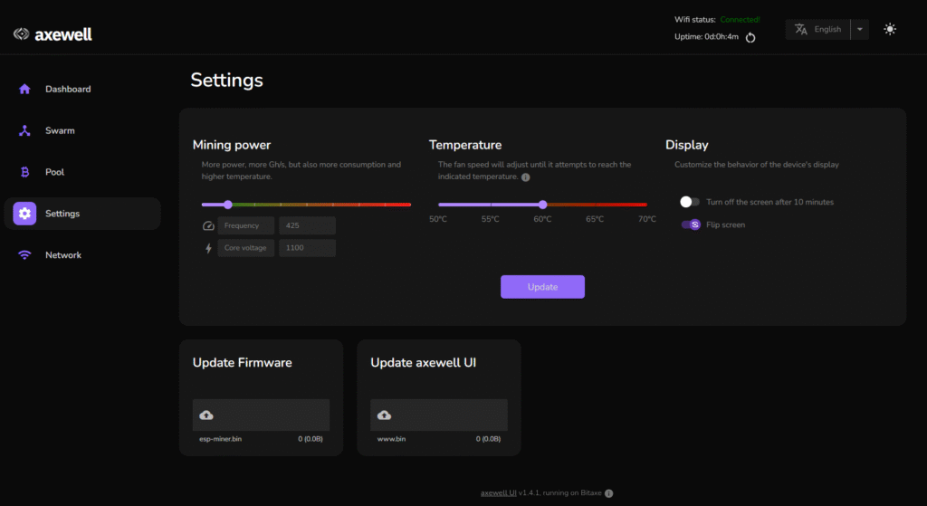 Just upload the file above to your Bitaxe. Don’t worry about updating axewell UI, if you don’t like it you can go back to AxeOS from the settings page by re-uploading the AxeOS www .bin
