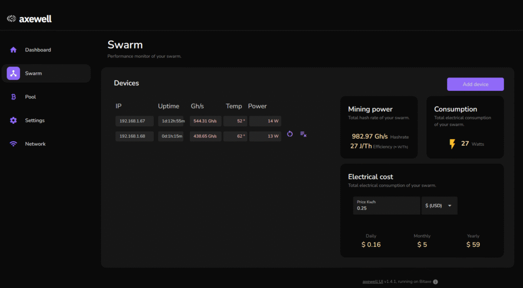| AxeOS Interface | Complete control via AxeOS | Complete control via AxeOS | Complete control via AxeOS |