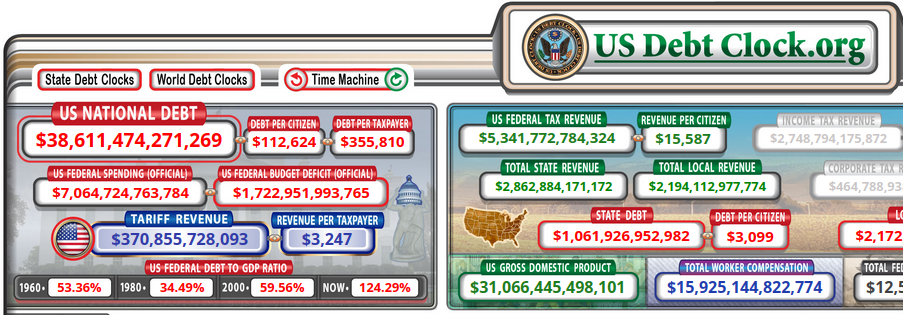 (Headline article below) Nothing good will come from government regulations, as they hate you and don’t want you to have financial privacy or a way to build wealth they can’t tax and steal. But of interest is the talk of stablecoins and yields, as stablecoins are primarily buying US bonds as the backing, and then profiting from transactions and interest from those bonds. I can’t personally stand Coinbase because of their KYC, AML policies and high fees, but their CEO is on the money. Also of note, these stablecoin ventures are a wonderful incentive to get a lot of financial players to purchase and hold US debt which has grown to a ridiculous level, becoming difficult to sell, leading to money printing to cover it. And look at those debt numbers, $112,624 per citizen, and $355,810 per taxpayer. President Trump keeps floating ideas about giving you money and taking away income tax, but that debt needs to be paid down unless the plan is to have most of it wiped out in a major worldwide economic collapse…
