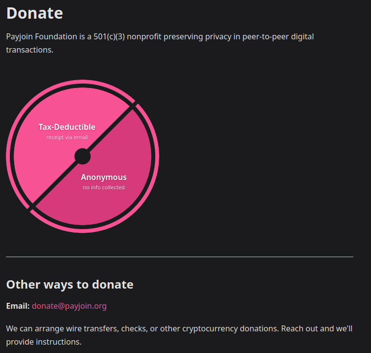 The Payjoin Foundation has been recognized as a 501(c)(3), so you can help break the link between Bitcoin payments on chain.